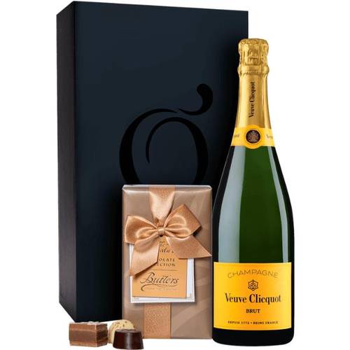 What’s better than receiving a bottle of Champagne? Why, receiving a bottle of Champagne and chocolates, of course! This gorgeous double act of Veuve Clicquot Brut NV and Butlers chocolates is guaranteed to delight. This gift is packaged in an attractive branded card box that adds to the sense of occasion.